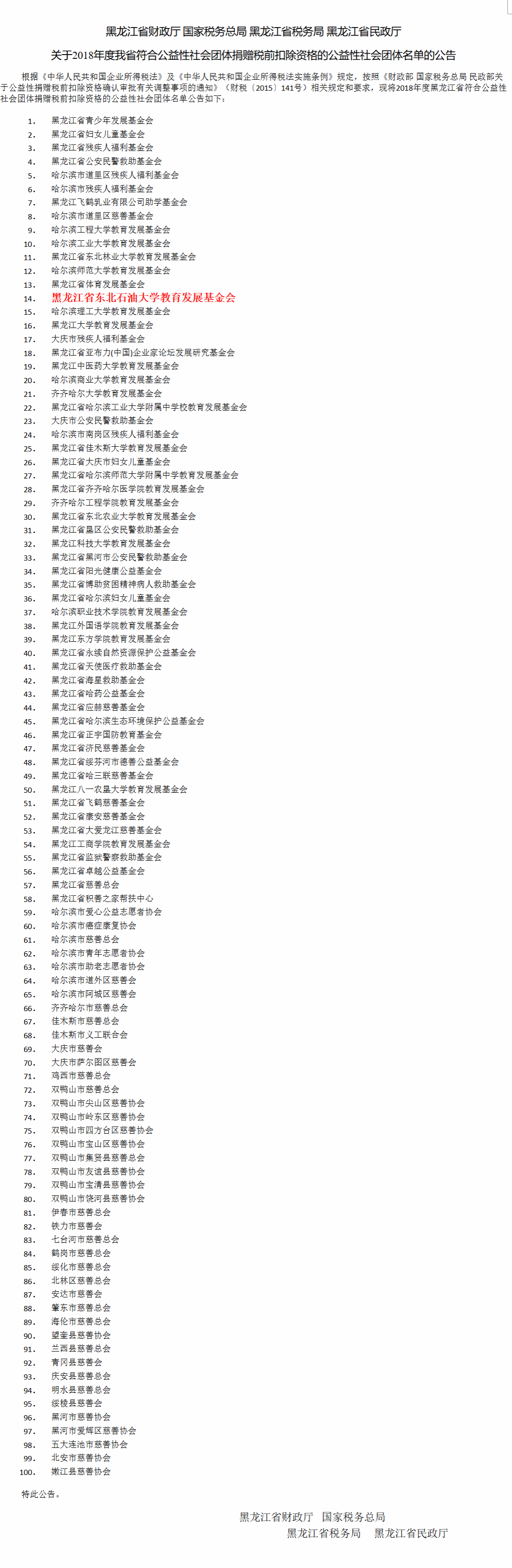 关于2018年度我省符合公益性社会团体捐赠税前扣除资格的公益性社会团体名单的公告